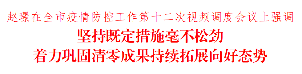 趙璟在聽取匯報后指出,本輪疫情發(fā)生以來,全市上下爭分奪秒、以快制快,取得了社會面清零的階段性成效,探索了不少行之有效的經(jīng)驗做法,但鞏固成果、防止反彈任務依然十分艱巨。要把疫情防控作為考驗干部能不能、行不行、硬不硬的重要標尺,始終保持清醒頭腦,把嚴防嚴控各項措施不折不扣落實到位,堅決打贏疫情防控殲滅戰(zhàn),盡早恢復正常生產(chǎn)生活秩序。
