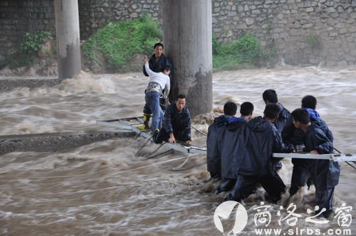24日6時50分,柞水縣公安局110接到群眾報警:一女子被洪水圍困在柞水縣干佑大橋橋墩橫梁上,十分緊急,請求救援。險情就是命令,接警后,110迅速將警情下達到干佑派出所以及巡特警大隊。受令民警迅速趕往出事地點,只見一名女子趴在河中心橋墩橫梁上,橋墩四周全被淹沒,女子情緒激動,幾次險些跌落水中,而此時河水還在上漲,情況非常危急。由于沒有專業的救援工具,現場民警無法實施有效救援。公安局立即指令政委王瑤帶領機關值班領導和消防應急救援大隊11名消防戰士、巡特警大隊10名民警,攜帶保險繩、長纜繩、伸縮梯等救援器材,火速趕到事發地開展營救工作。干警們下到水中,在洪水中艱難前行,在距離女子十余米處將用于營救的伸縮梯一端搭到橋墩橫梁上,另一端由站在淺水區的多名民警雙手托住,舉在水面上。兩名消防戰士身系覽繩沿梯子爬到橋墩橫梁上,用長纜繩系住女子腰部,1名戰士護送女子從梯子往岸邊方向爬行,行進約兩米時,伸縮梯滑落,婦女連同救援戰士落入洪水之中,周圍的群眾同時發出驚呼,淺水區救援人員奮不顧身的迅速牽拉纜繩,將落水女子和戰士拉到岸邊,營救人員迅速將該女子抬上岸邊,立即送縣人民醫院搶救。經醫院檢查,該女子身體狀況良好,未受到損傷。民警一邊聯系其親屬,一邊為該女子找來干衣服,購買了新鞋襪,并安排女民警對其進行照看。