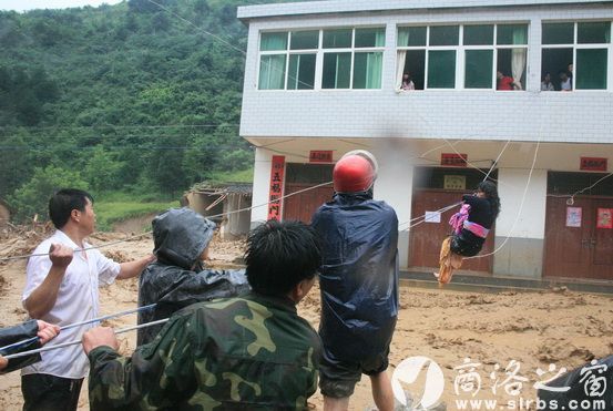 本網訊 (文/圖 董維剛)7月23日凌晨3時,一場突如其來的山洪襲擊山陽縣長溝鎮街道,17名村民和鎮屬單位職工從睡夢中被驚醒,倉皇逃到附近兩座樓房上避險。天亮后,小鎮上已是一片汪洋,被洪水吞噬的平房陸續坍塌,這兩座樓房也變成了“孤島”,隨時可能被沖垮,困在樓上的災民大聲呼救。清晨6點,三官殿村支書陳世寬和鎮上20多黨政干部一起投入搶險,經過3個多小時緊急救援,被困人員及時脫險。