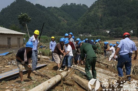 匯豐加油站被洪水襲擊,斷裂的電線引起噼啪作響。緊急出動的山陽公安消防部隊在抵達現(xiàn)場后2分鐘就撲滅火險。護城河河堤塌陷,武警消防官兵配合水利搶險突擊隊全力圍堵。甘溝口小女孩被困,消防官兵成功解救。洪水猛漲,威脅老縣城,武警部隊三次爆破排除險情……