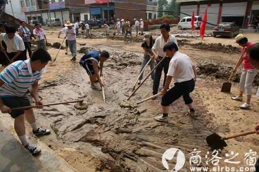 7月28日,丹鳳縣組織縣機關各大黨委300余名黨員干部奔赴竹林關重災區(qū),與省、市武警部隊官兵、當?shù)剜l(xiāng)鎮(zhèn)干部及包抓救災干部近千余人,投入大、中型機械40余臺,全面展開疏通主干街道路義務勞動工作。 (邵志強 攝)