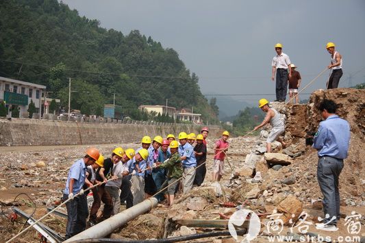幾天來,丹鳳縣供電分局鐵峪鋪供電所積極投身于抗洪救災中,迅速成立“黨員突擊隊”,深入災情最嚴重的鐵峪鋪河流域,移栽沖倒電桿15根,扶正傾斜電桿17根,加固水泥基8根。截至7月28日下午15時,該災區(qū)已基本恢復照明。(周鵬華 田吉文 攝)