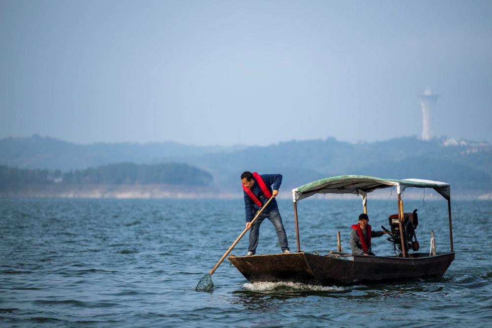 △2024年10月28日,湖北十堰丹江口清漂隊(duì)隊(duì)員在庫區(qū)進(jìn)行清漂作業(yè)。2023年,丹江口成立“小水滴”守水護(hù)水志愿服務(wù)隊(duì),越來越多人加入守水護(hù)水行列。