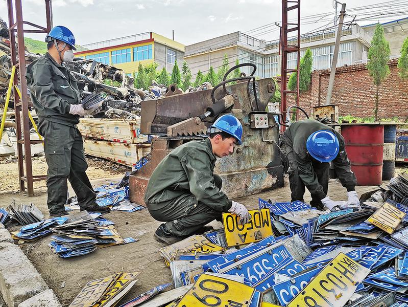 5月26日,市交警支隊(duì)車管所在商洛市磊寶報(bào)廢汽車回收拆解有限責(zé)任公司開展機(jī)動(dòng)車號(hào)牌集中銷毀活動(dòng),對(duì)2019年辦理轉(zhuǎn)移登記號(hào)牌、殘損號(hào)牌、辦理注銷業(yè)務(wù)回收的廢舊號(hào)牌以及路面秩序查扣的假牌套牌等車牌進(jìn)行逐塊切割、解體銷毀,共銷毀廢舊號(hào)牌1.2萬面。(宋雨萌攝)