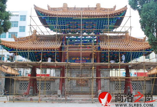 本網訊(邱宏波) 近日,洛南縣文物保護部門斥資50萬元,對始建于明洪武三年的洛南文廟欞星門進行二期油漆彩繪。本次修繕還包括文廟前院東西廂房、戟門、后院東廂房、東廊房等建筑。整個修繕工程將歷時兩個月。圖為工人正在進行欞星門油漆彩繪。