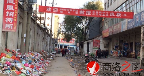 商洛日?qǐng)?bào)訊(方 方) 十一月六日,記者在東背街看到,路邊堆積的“彩色垃圾道”已經(jīng)占據(jù)了人行道二分之一的路面,與垃圾堆旁邊墻上貼著的“請(qǐng)勿在此倒垃圾”標(biāo)語形成了鮮明的對(duì)比。