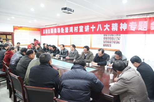 在專題會上,張盈安從黨十八大報告提出到2020年全面建成小康社會的奮斗目標,堅持走中國共產黨領導的中國特色社會主義道路,完善未來發展體系和把我國建成富強、民主、文明、和諧的社會主義現代化國家等四個方面,結合我縣和云蓋寺鎮實際情況,對黨的十八大報告的要點和主要精神深入淺出地進行了全面解讀。張盈安指出,黨的十八大確立的重大理論觀點、重大方針政策和重大工作部署,明確了未來五年乃至十年的發展目標和任務,對于全面建成小康社會、改變貧困地區面貌具有重大意義。云蓋寺鎮和巖灣村要以十八大精神為統領,進一步完善工作措施,加大工作力度,全面推動巖灣村各項事業全面發展。