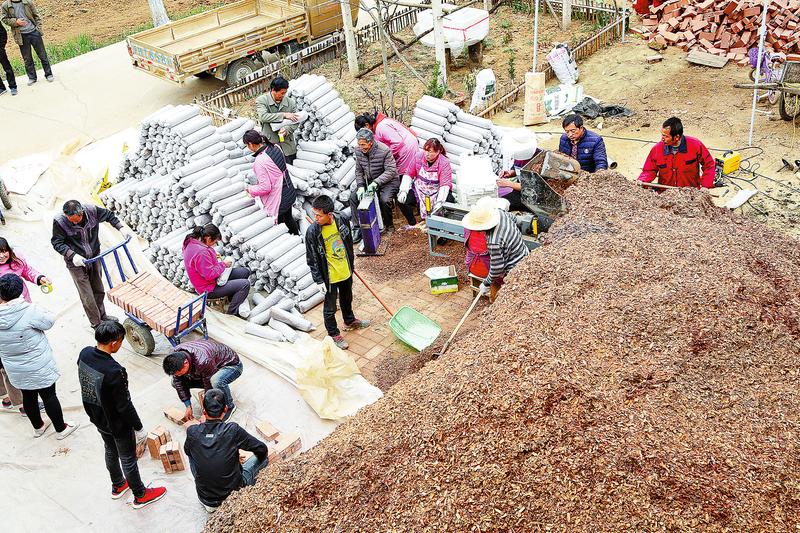 張永濤家的小院里,村民正忙著干活。