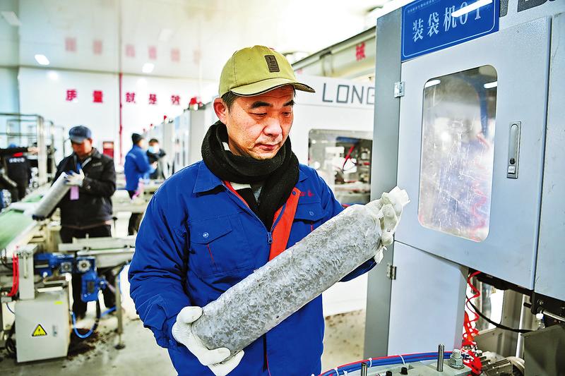 近日,洛南嶺南生物科技扶貧開(kāi)發(fā)有限公司智慧工廠裝袋車(chē)間質(zhì)檢員在查驗(yàn)菌袋質(zhì)量。