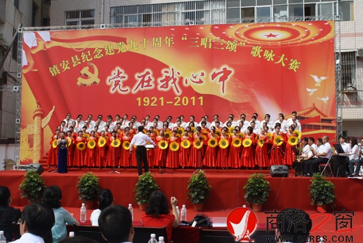 本網(wǎng)訊 (陳風(fēng)軍) 6月24日,鎮(zhèn)安縣委、縣政府在縣體育場隆重舉辦以“黨在我心中”為主題的紀(jì)念建黨90周年“三唱三頌”歌詠大賽,來自全縣機(jī)關(guān)單位、群眾團(tuán)體共計11支代表隊、2萬余人參加此次活動,鎮(zhèn)安縣28萬兒女以飽滿的激情、飛揚(yáng)的歌聲向黨獻(xiàn)禮!