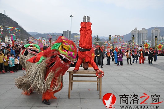 2月14日,商南縣文化廣場龍騰獅躍,熱鬧非凡,數萬名觀眾在興致勃勃地觀賞春節花燈年俗展演活動。