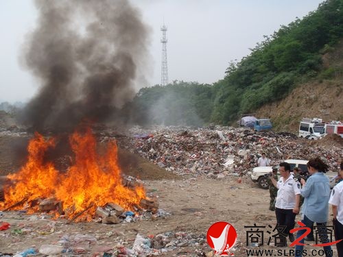 商洛日?qǐng)?bào)訊(汪治 何祖華)為確保全縣飲食用藥安全,近日,商南縣食品藥品監(jiān)督管理局聯(lián)合公安、消防、衛(wèi)生、質(zhì)檢等部門機(jī)構(gòu),深入食品藥品生產(chǎn)、經(jīng)營(yíng)單位開展假冒偽劣食品藥品檢查宣傳活動(dòng),強(qiáng)力打擊偽劣假冒食品和藥品的生產(chǎn)、銷售。圖為假冒偽劣食品藥品集中銷毀現(xiàn)場(chǎng)。