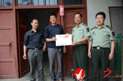 商洛日報訊(劉春榮 馬偉民)“八一”前夕,丹鳳縣武裝、民政部門集中開展為優秀現役軍人家庭送喜報、懸掛“革命軍屬”牌飾活動。目前,全縣已送“優秀士兵”喜報16份,懸掛“革命軍屬”牌飾172戶。