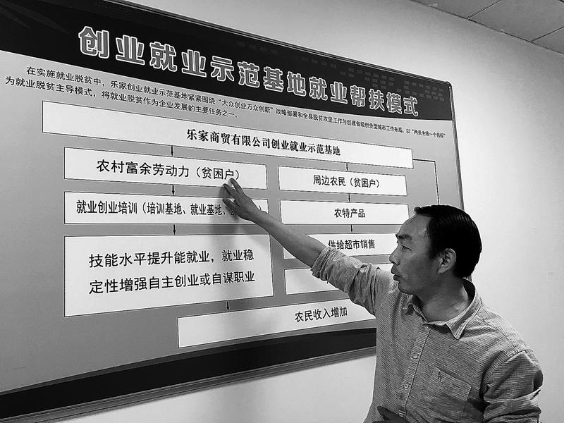 公司也是洛南縣“創(chuàng)業(yè)就業(yè)示范基地”,通過“培訓—就業(yè)—創(chuàng)業(yè)”這一途徑,對農(nóng)村富余勞動力進行就業(yè)創(chuàng)業(yè)培訓,提升他們的技能水平,促使他們實現(xiàn)自主創(chuàng)業(yè)或自謀職業(yè)。同時,樂家商貿(mào)通過投資產(chǎn)業(yè)引導資金來發(fā)展農(nóng)特產(chǎn)品生產(chǎn)基地,去年公司黨支部在參與“萬企幫萬村”活動中與石門鎮(zhèn)的10個村黨支部結對聯(lián)建,投資創(chuàng)辦愛心超市和農(nóng)特產(chǎn)基地,將185戶貧困戶納入產(chǎn)業(yè)扶貧計劃,發(fā)展香菇、木耳、核桃和精細蔬菜,公司統(tǒng)一加工、包裝、銷售,實現(xiàn)產(chǎn)品升值,增加貧困戶家庭收入。目前,該基地已創(chuàng)造100多個就業(yè)崗位,吸納周邊233名富余勞動力,其中貧困戶30人。2017年樂家商貿(mào)被國務院扶貧辦授予“全國就業(yè)扶貧基地”,張鵬被全國工商聯(lián)評為“西部慈善之星”。