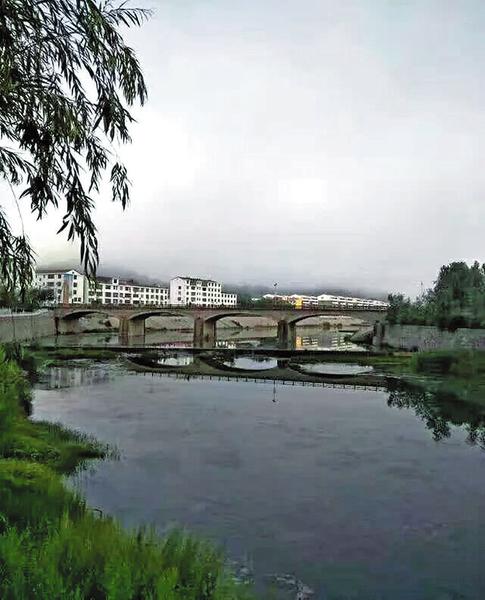 俯瞰下去,我的故鄉——小鎮趙川就坐落在這里。半輪紅日已懸在前坡嶺的樹梢上,晨曦斜照,映得嵐靄籠罩中的滔河波光粼粼。此時,小鎮一片沉寂而朦朧,唯滔河流水,纏綿不斷,跌宕流玉,咕咕可聞其聲。